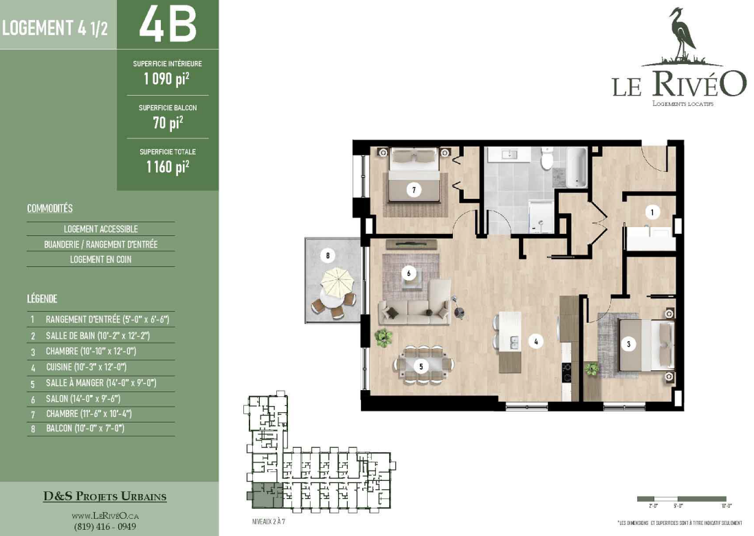 Soyez parmi les premiers à réserver votre futur logement dans notre immeuble neuf, idéalement situé tout près de la rivière Saint-François. Profitez d’un cadre de vie moderne et confortable, dans un bâtiment conçu avec soin pour votre bien-être.